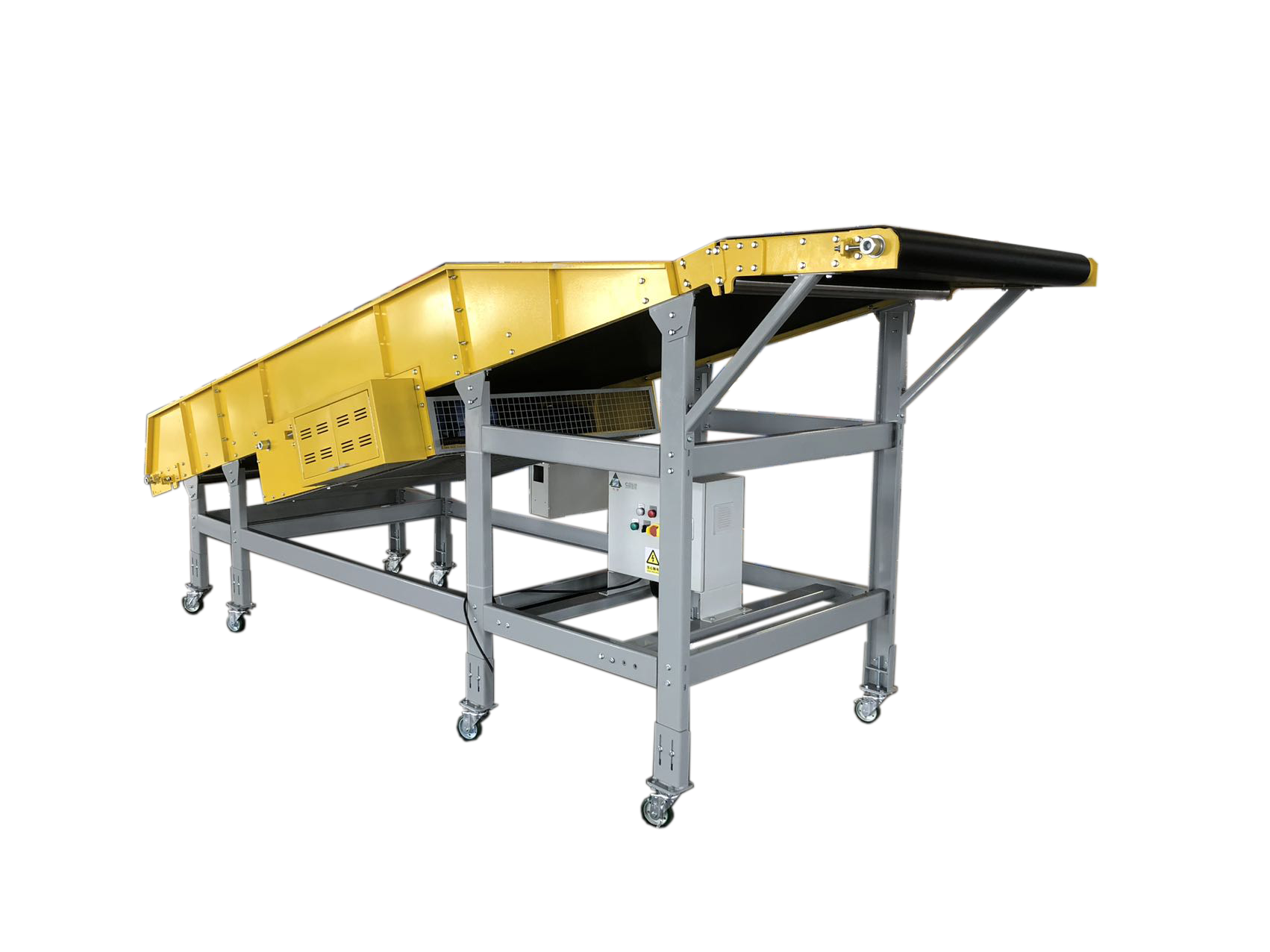 The inclined belt conveyor is a fundamental component in modern material handling systems. Its main function is to move the product from lower levels to higher levels on a continuous power belt. Our inclined conveyor stands out due to its meticulous attention to detail in its design.
